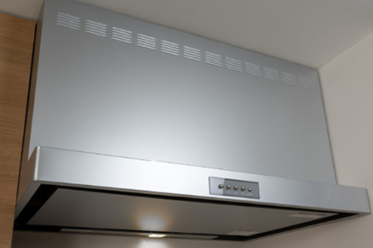 ニオイや煙を効率的に排気する、整流板付レンジフードが装備されています。油汚れに強く簡単に取り外しが可能なので、お手入れも簡単です。
