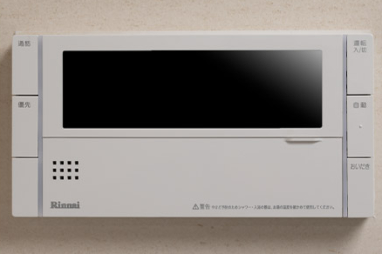 お湯張り、足し湯、追い焚きもスイッチを押すだけで簡単に操作可能です。キッチンにも操作パネルが設置されています。