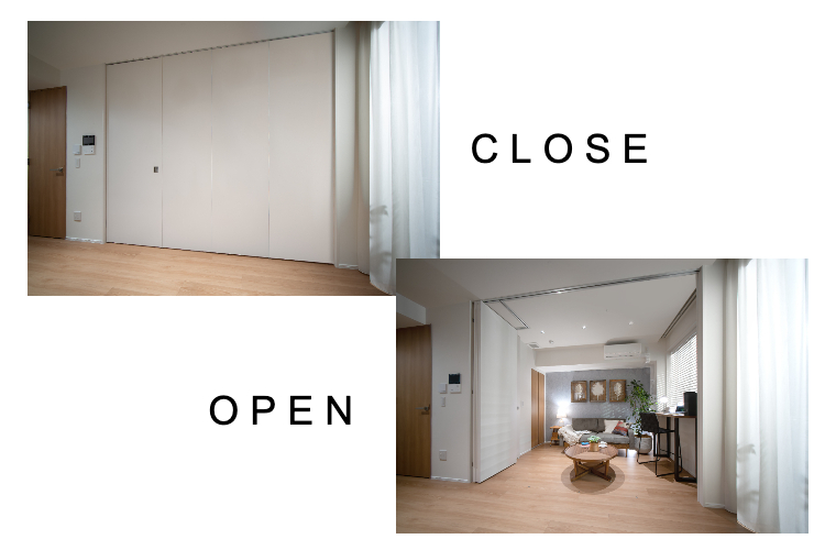 ライフスタイルに合わせて、空間を自由にアレンジできるウォールドアが設置されています。